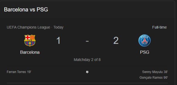 With this win, PSG climb into third place in the Champions League league phase, tied on points with Real Madrid and Bayern Munich.